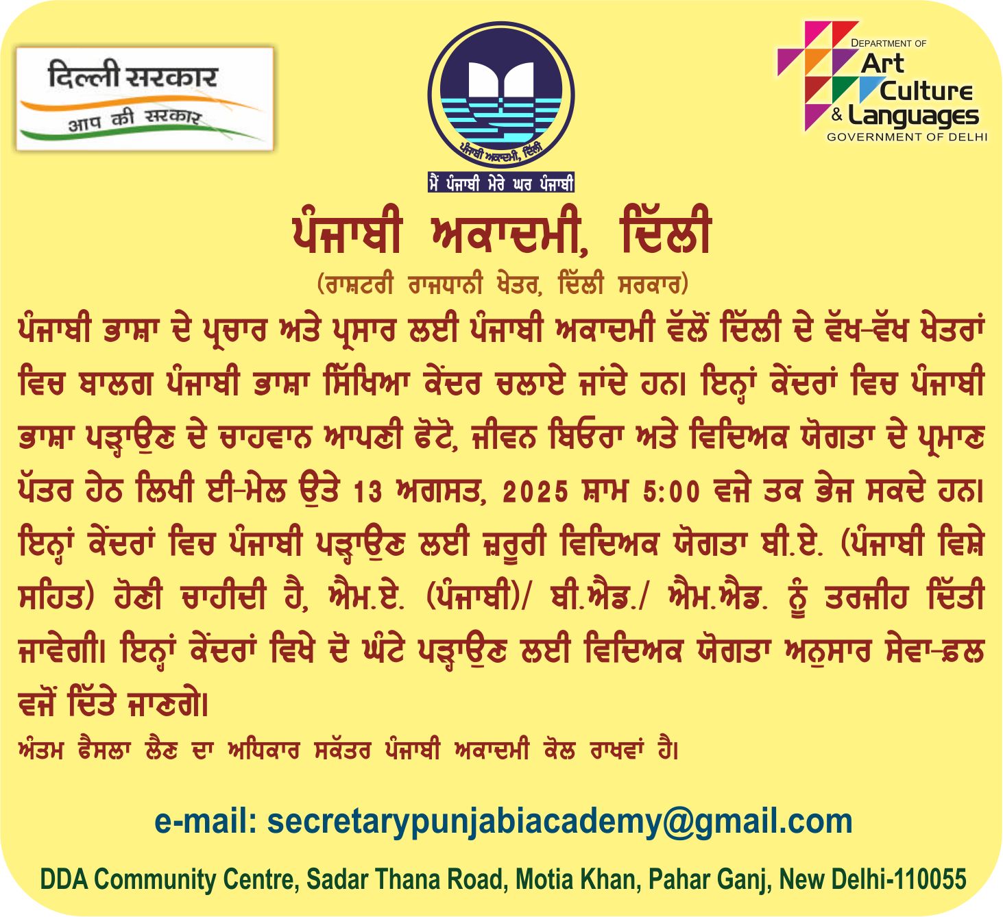 PUNJABI ACADEMY, DELHI, ADVERTISEMENT OF ADULT REGULAR CENTRES